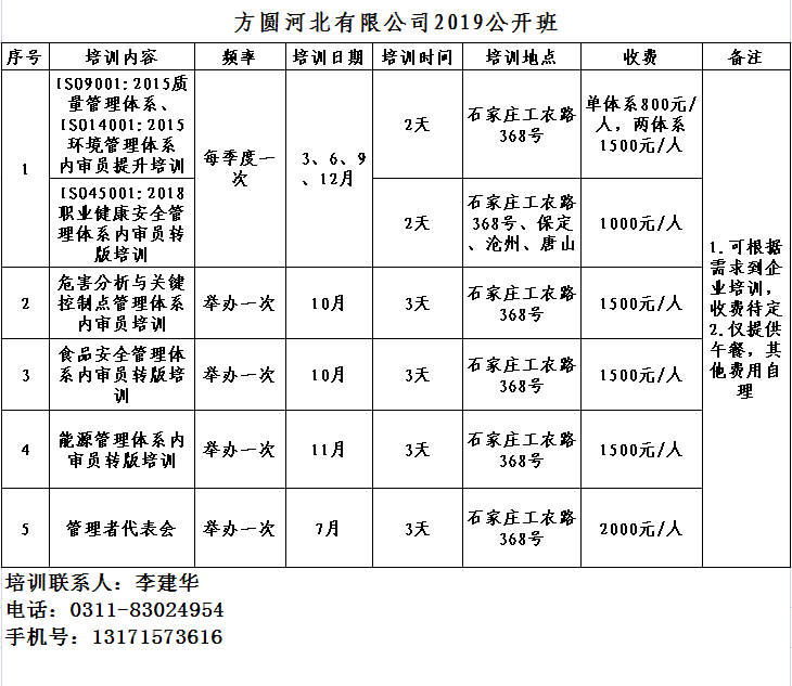 方圆河北有限公司2019公开培训班