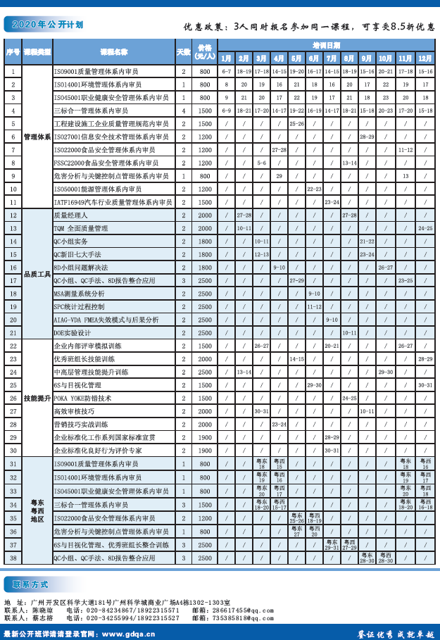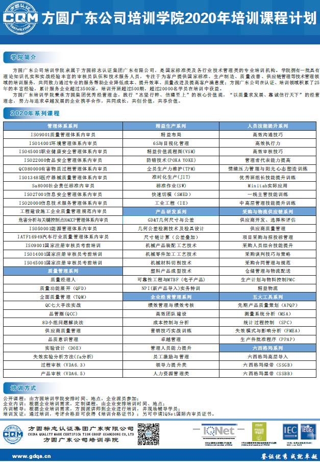 方圆广东公司培训学院2020年培训课程计划