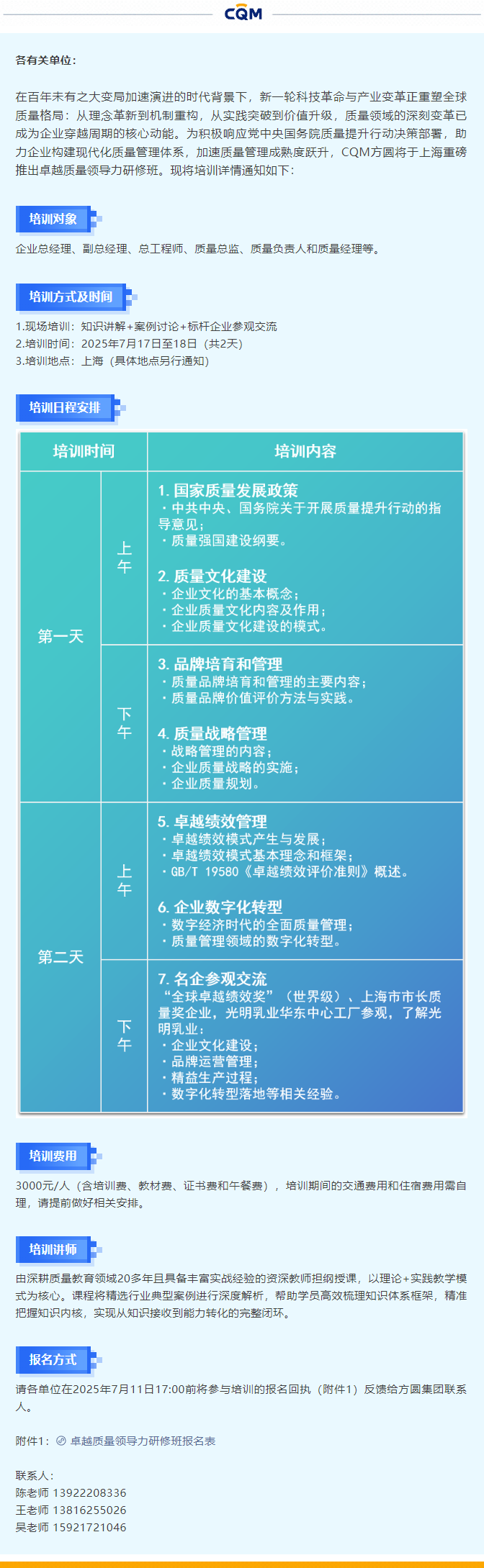 九游 SPORTS举办卓越质量领导力研修班的通知