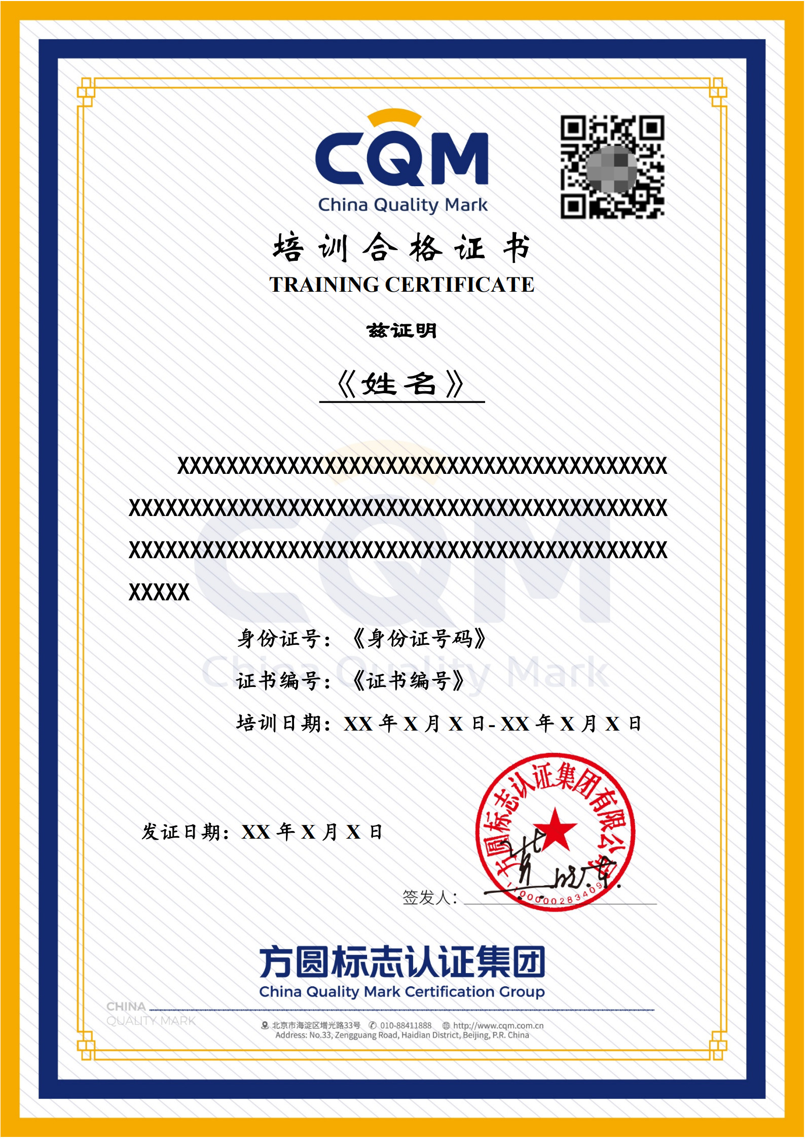 培训证书样本图片