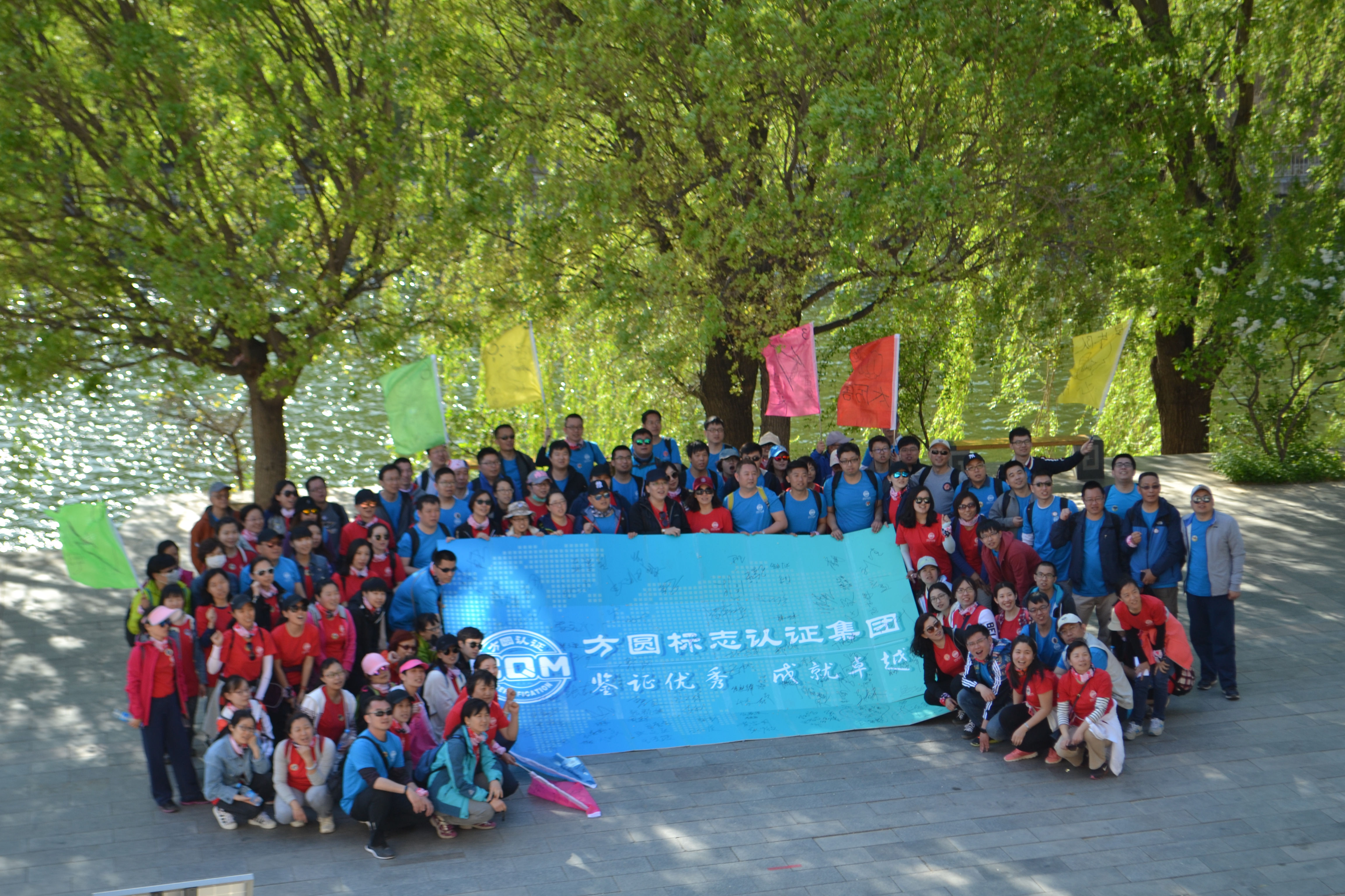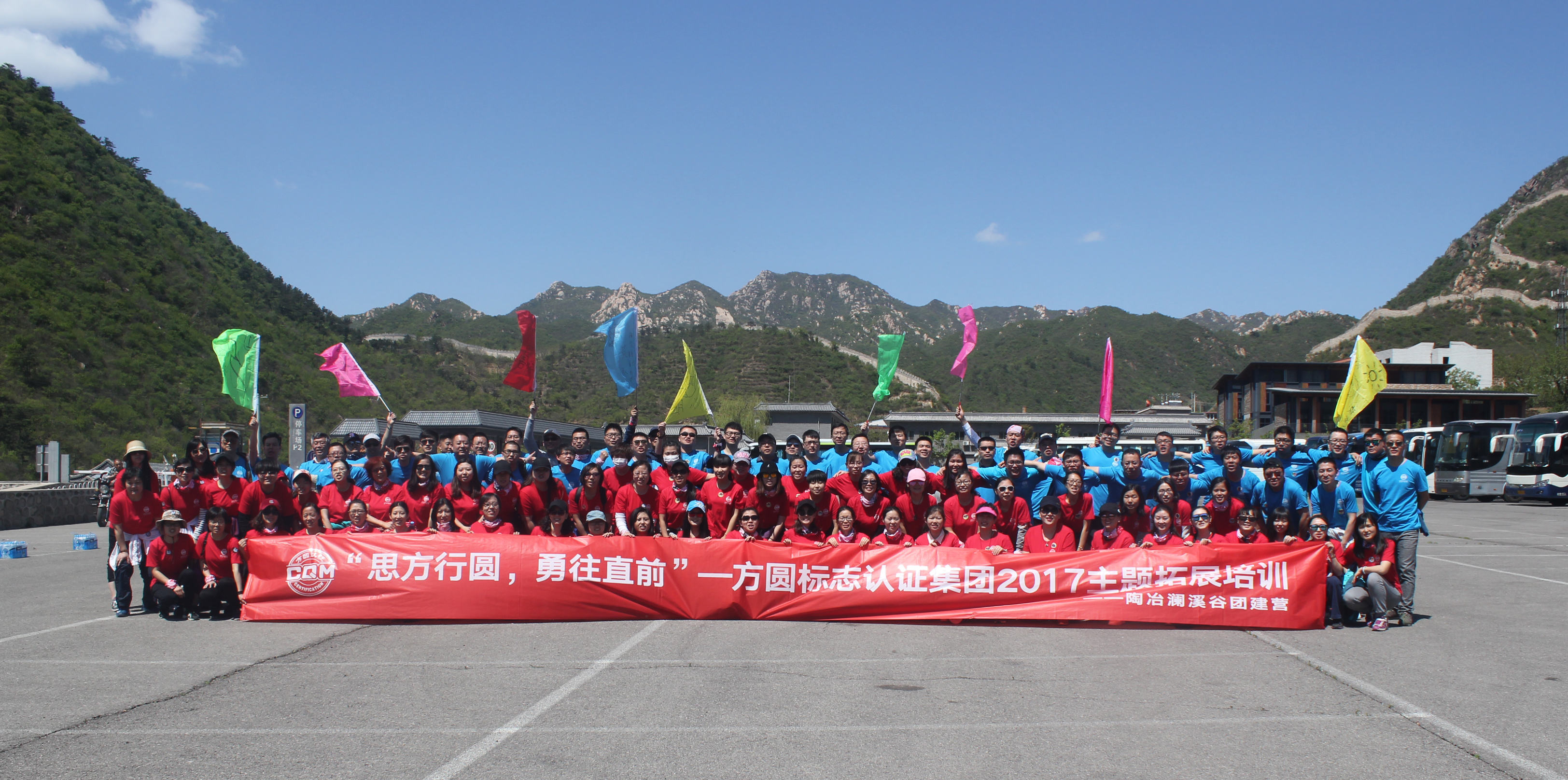 抵达黄花城水长城培训场所后,大家在培训教练的带领下被分成九个小组,经过各小组的一番头脑风暴,九个个性鲜明的团队名称、响亮的团队口号、嘹亮的队歌以及富有特色的队旗逐一精彩亮相,“小西湖场地趣味定向寻宝—湖底的秘密”拓展培训活动的序幕也正式拉开。各队手持“通关宝典”,比拼体力脑力,共同配合,拯救了“被诅咒的水怪”,攻克了“行走的板栗王”,挑战了“语言魔王”……活动过程中所有团队成员积极参与,迎难而上,队员之间相互支持,相互鼓励,最终,所有团队均圆满通关,完成了最终任务——方圆梦想拼图。
