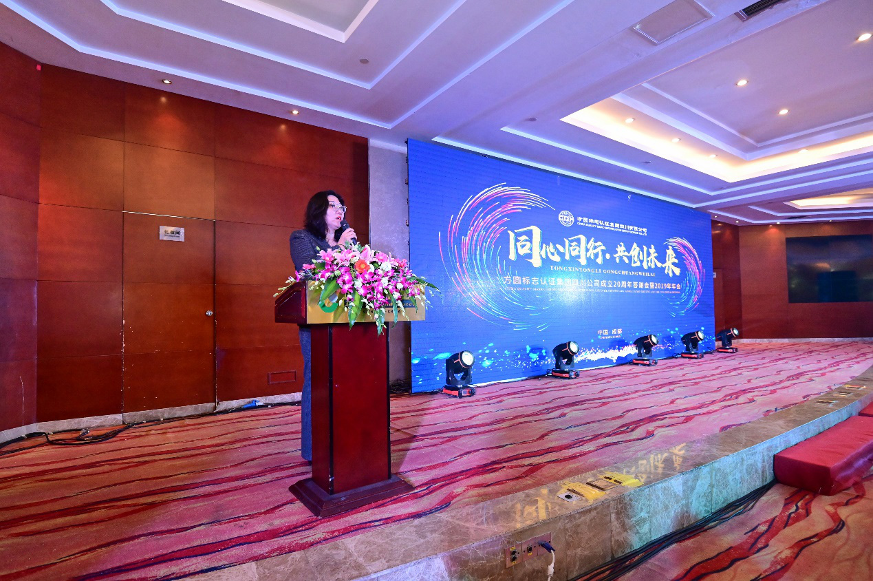 方圆集团公司董事长/总经理冀晓东代表集团对出席的各位领导、来宾表示热烈欢迎,对方圆四川公司成立20周年表示衷心祝贺。她回顾了方圆集团这20多年来不断开拓创新、树立行业领军地位的发展历程,肯定了四川公司过去20年积极参与四川各行各业质量工作、服务四川省高质量发展作出的优异成绩,寄语四川公司继续发扬“专注、专业、专心”的行业文化,为四川省各级政府部门、企业客户提供更优质的质量认证和技术服务,助力四川标准、四川品牌、四川质量全面提升,为建设品质四川作出更大的贡献。
