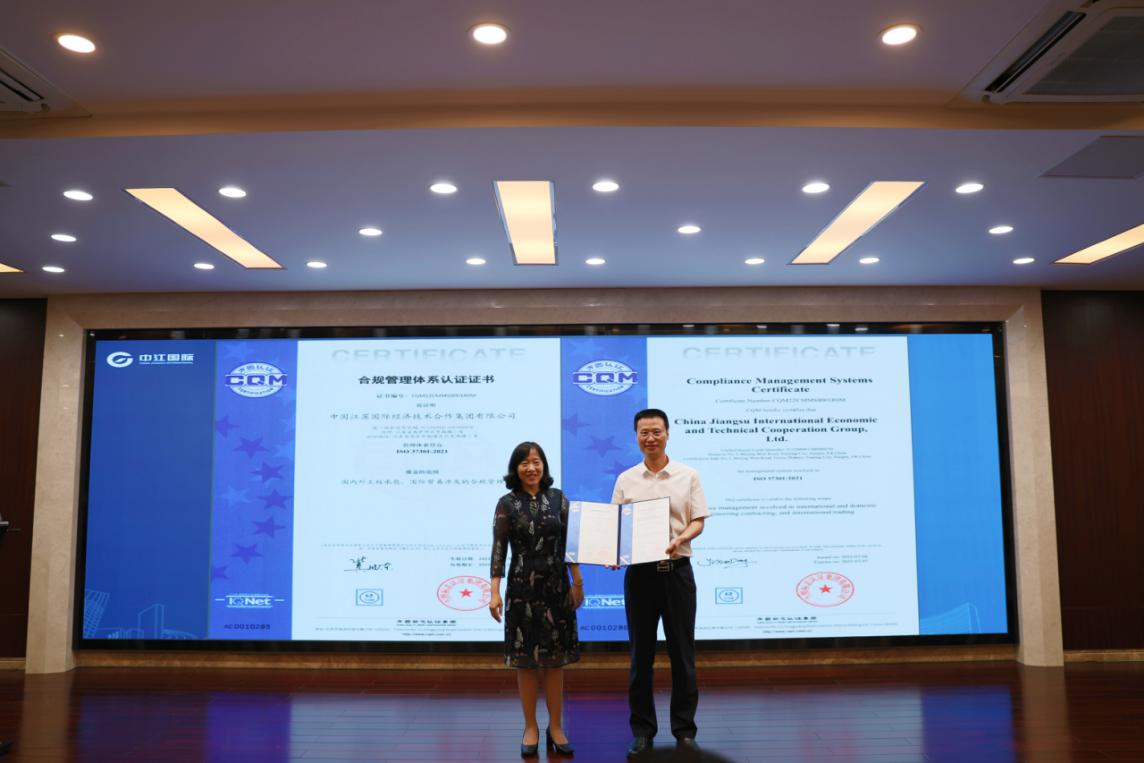时间:2022年08月04日 合规经营,则商业有序,可图基业长青。构建和实施符合ISO 37301国际标准的合规管理体系,可有效控制合规风险,促进企业可持续发展。2022年8月2日下午,方圆标志认证集团副总裁刘险锋亲临江苏为中江国际集团颁发集团首张ISO 37301合规管理体系认证证书。江苏省国资委一级巡视员彭向峰、中江国际集团党委书记、董事长宋勤波出席会议并讲话,总经理朱新宝代表中江国际接受ISO 37301合规管理体系认证证书,方圆集团体系认证事业部总经理彭新、副总经理王立新、方圆江苏公司总经理施晓彦、常务副总经理刘伟、技术总监刘立生出席颁证仪式。