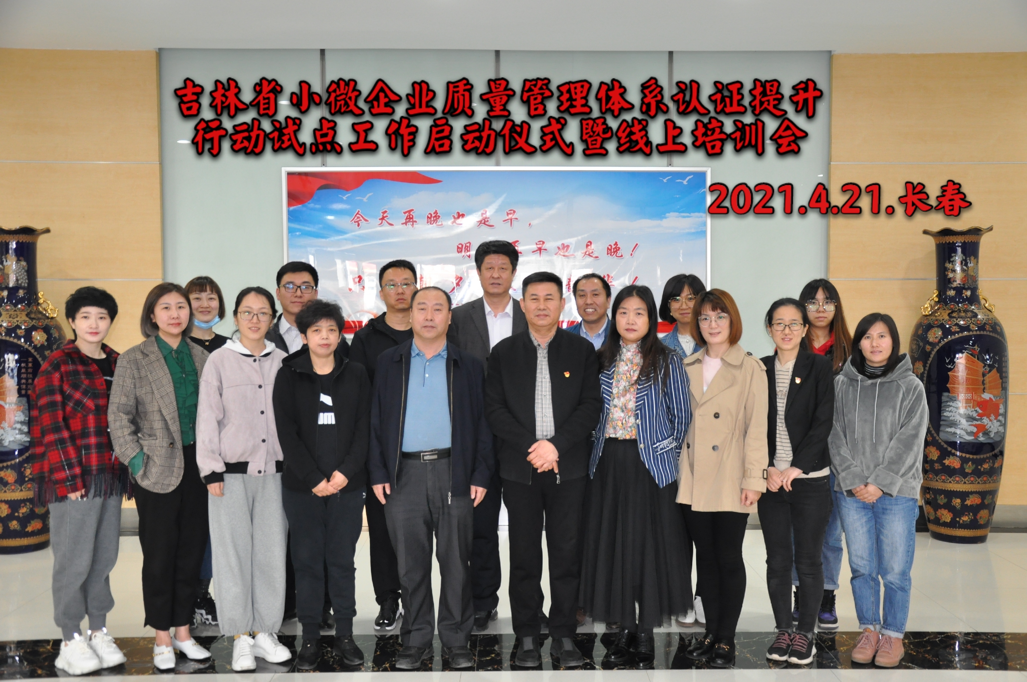 时间:2021年04月22日 4月21日,吉林省小微企业质量管理体系认证提升行动试点工作暨线上培训会以钉钉直播方式在方圆吉林公司启动,各市、州市场监管局认证业务科室负责人、小微企业负责人、管理者代表、吉林公司全体员工等共计130余人参加会议。