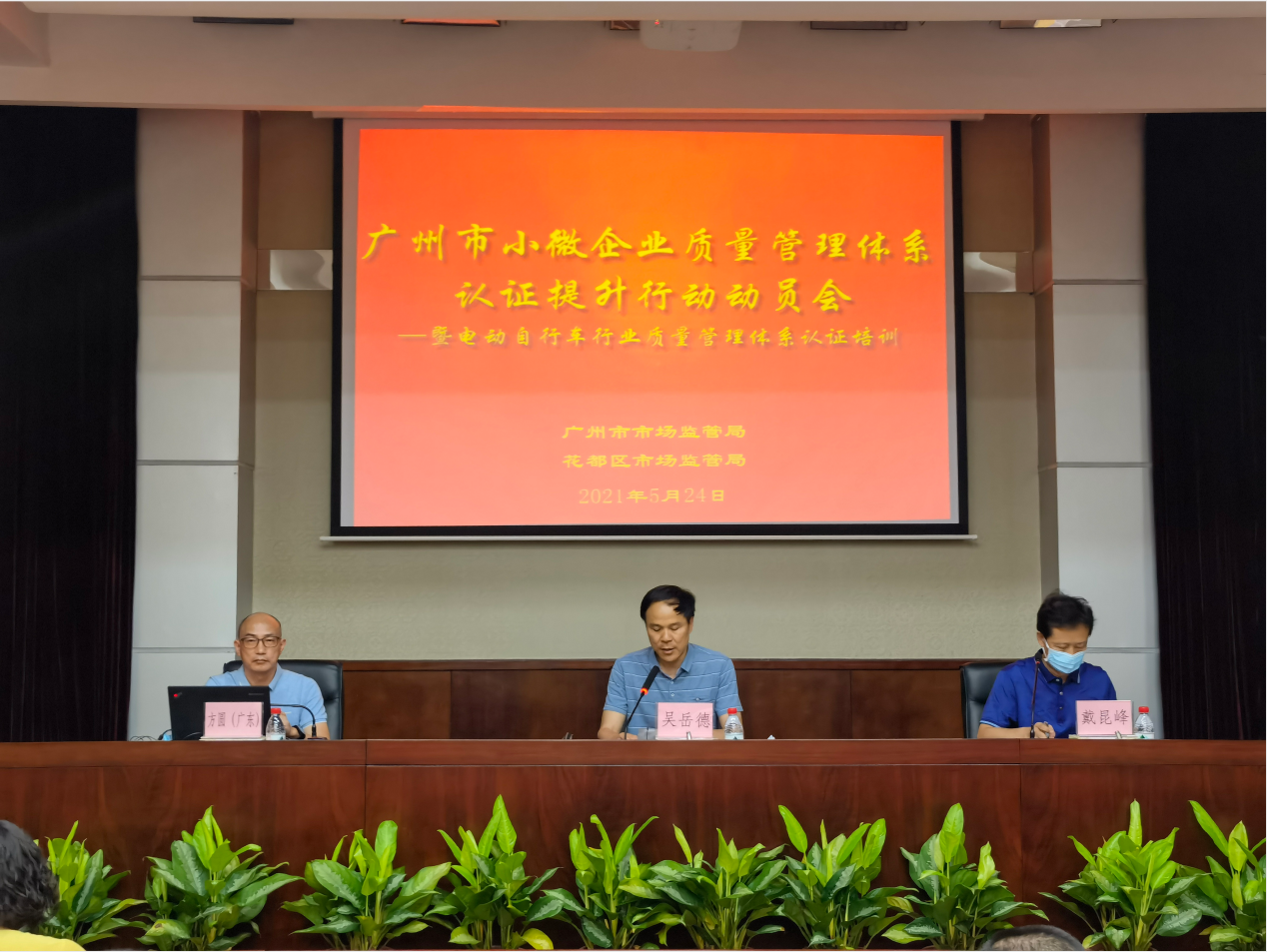 时间:2021年05月26日 为进一步贯彻《国务院九游 SPORTS加强质量认证体系建设促进全面质量管理的意见》,广东省广州市巿场监督局联合花都区市场监管局开展了广州市小微企业质量管理体系认证提升行动动员会。认证认可监督管理处戴昆峰处长主持,市局总工程师吴岳德做动员讲话,方圆广东公司熊飞彪常务副总进行了授课。广州市局认监处、11个区的分管局长和主要负责人员,全市23家电动自行车企业代表共50多人参加此次动员会。