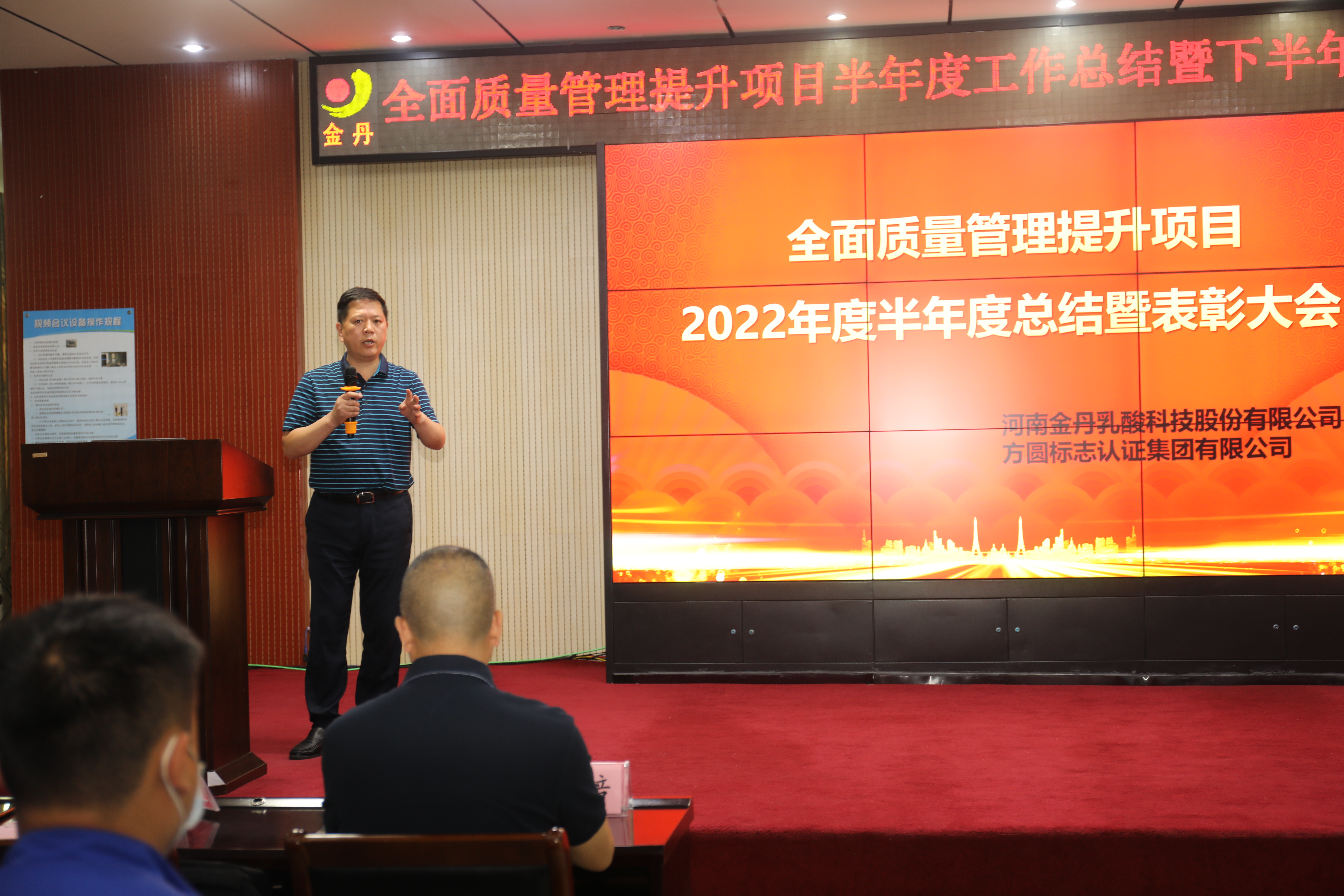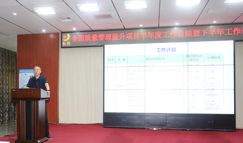 会上,金丹乳酸科技项目经理蒋栋梁对公司2022年上半年全面质量管理提升项目工作开展情况进行总体介绍。方圆河南公司总经理李红培对专家团队2022年上半年工作进行了总结,并向与会者汇报了下半年重点工作计划。